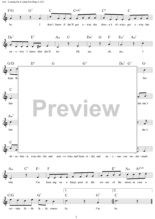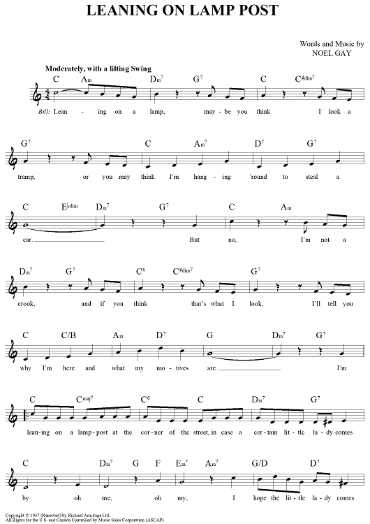 Digital Sheet Music for Leaning on Lamp Post by Noel Gay scored for Lead Sheet; id:447232