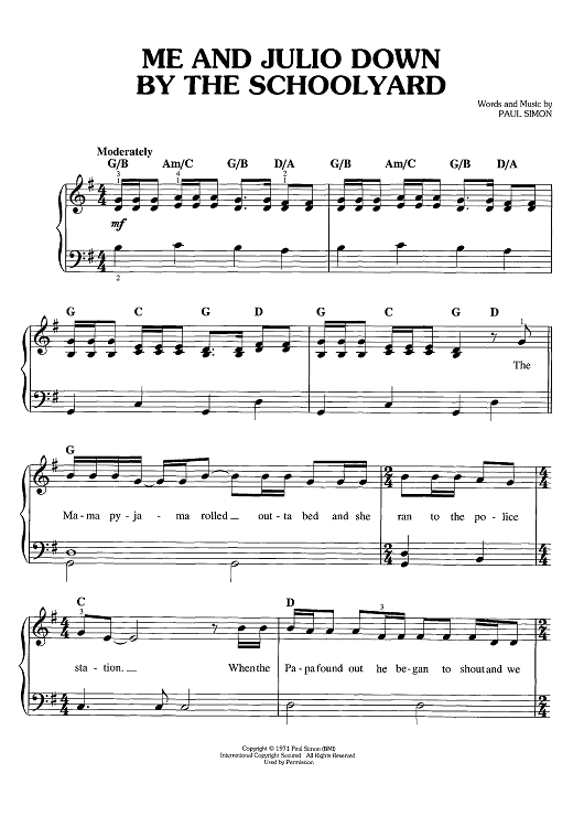 "Me And Julio Down By The Schoolyard" Sheet Music by Paul Simon