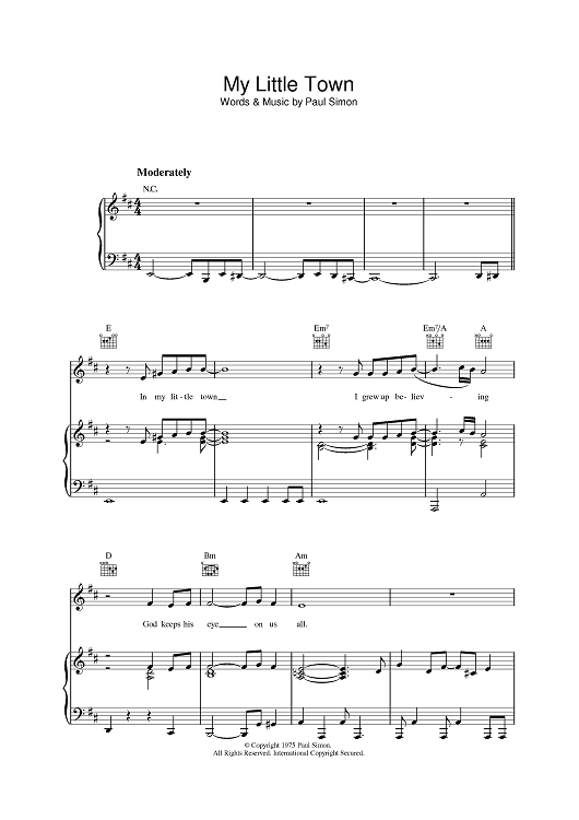 Digital Sheet Music for My Little Town by Paul Simon scored for Piano/Vocal/Chords; id:390941