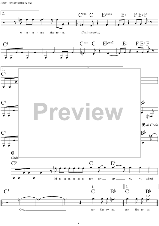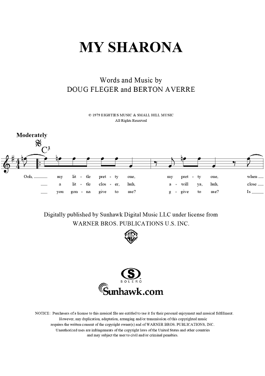 Digital Sheet Music for My Sharona by Doug Fieger, Berton Averre, The Knack scored for Lead Sheet; id:268531