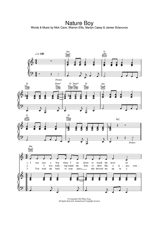 Digital Sheet Music for Nature Boy by Martyn Casey, Nick Cave, Warren Ellis scored for Piano/Vocal/Chords; id:380215