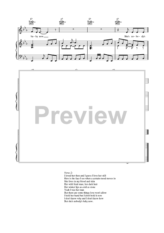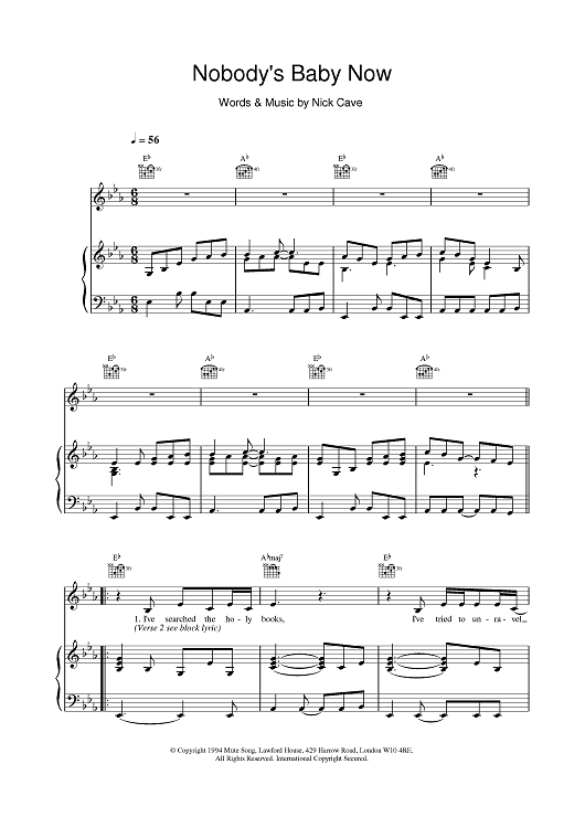 Digital Sheet Music for Nobody's Baby Now by Nick Cave scored for Piano/Vocal/Chords; id:382579