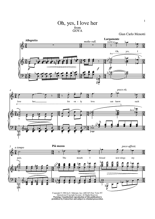 "Oh, Yes, I Love Her" Sheet Music by Gian Carlo Menotti