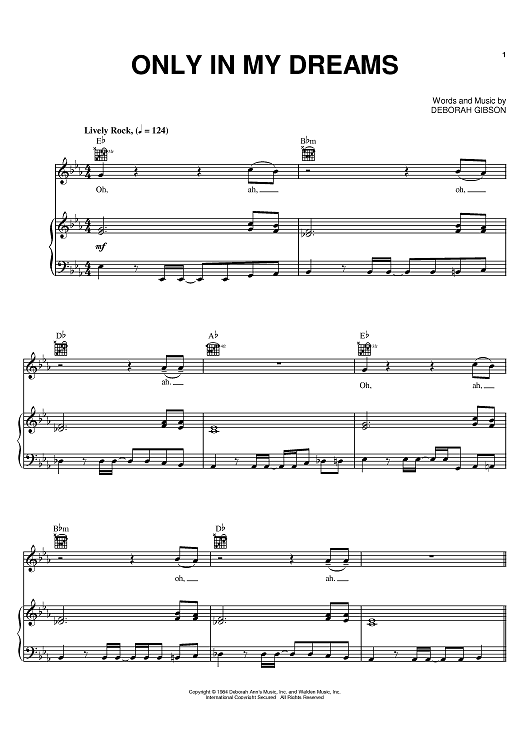 Digital Sheet Music for Only In My Dreams by Debbie Gibson scored for Piano/Vocal/Chords; id:402634