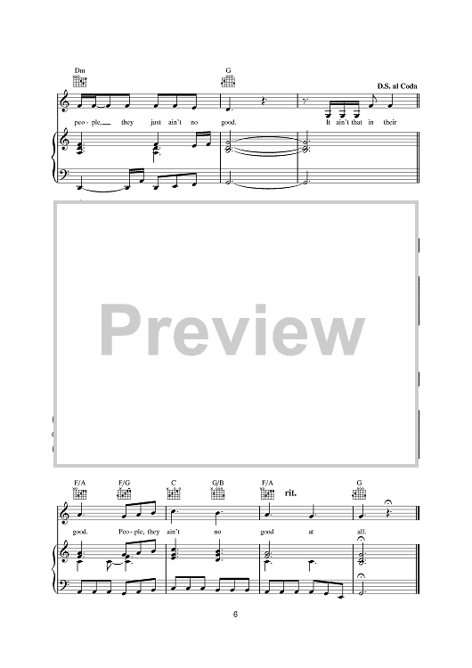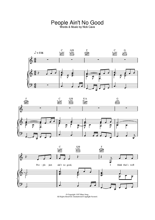 Digital Sheet Music for People Ain't No Good by Nick Cave scored for Piano/Vocal/Chords; id:380915
