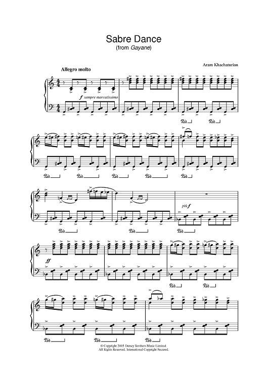Digital Sheet Music for Sabre Dance (from Gayane) by Dave Edmunds, Aram Khachaturian scored for Piano; id:390811