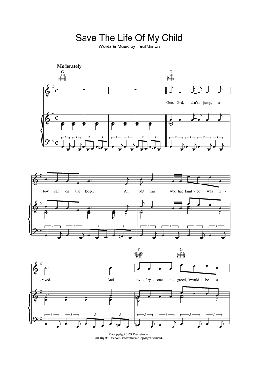Digital Sheet Music for Save The Life Of My Child by Paul Simon, Simon & Garfunkel scored for Piano/Vocal/Chords; id:391035