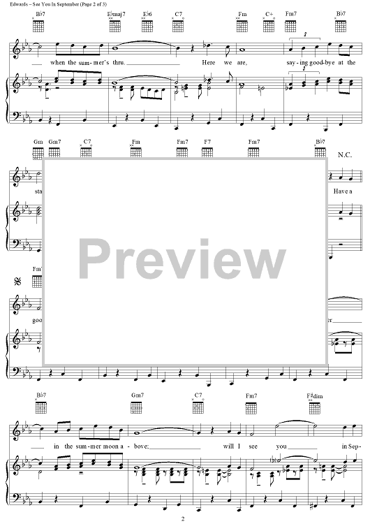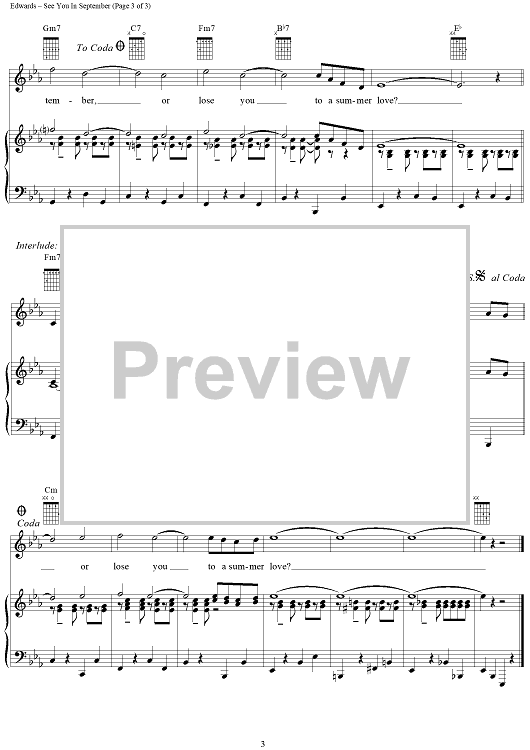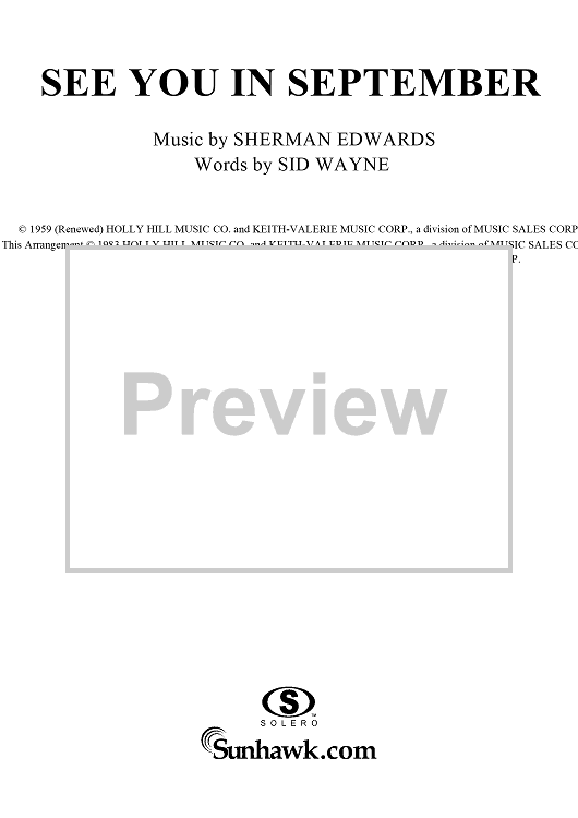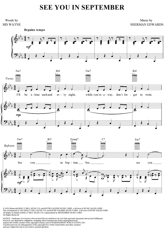 Digital Sheet Music for See You in September by The Happenings, Sherman Edwards, Sid Wayne, The Tempos scored for Piano/Vocal/Chords; id:116122