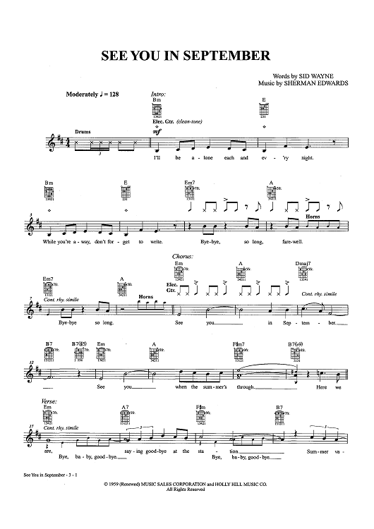 Digital Sheet Music for See You In September by Sherman Edwards, Sid Wayne, The Tempos scored for Lead Sheet; id:457912