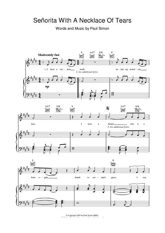 Digital Sheet Music for Senorita with a Necklace of Tears by Paul Simon scored for Piano/Vocal/Chords; id:380032