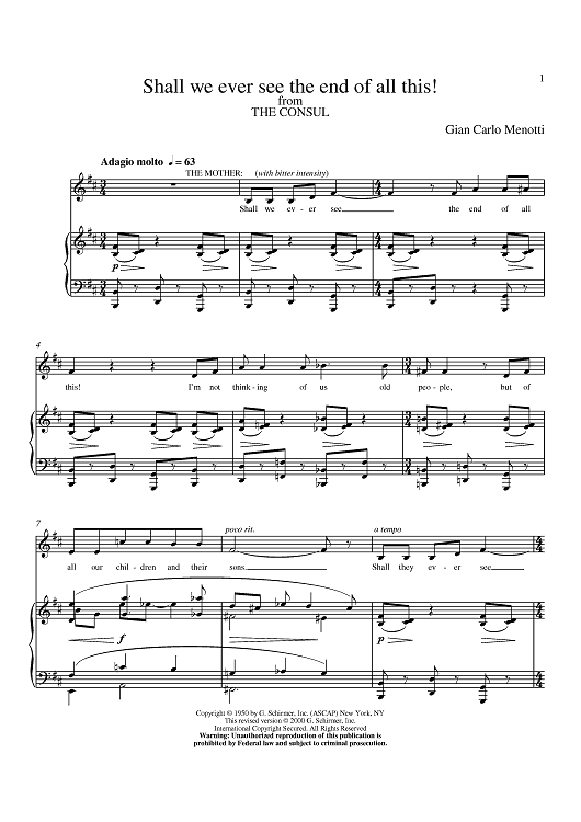 Digital Sheet Music for Shall We Ever See The End Of All This! by Gian Carlo Menotti scored for Piano/Vocal/Chords; id:385047