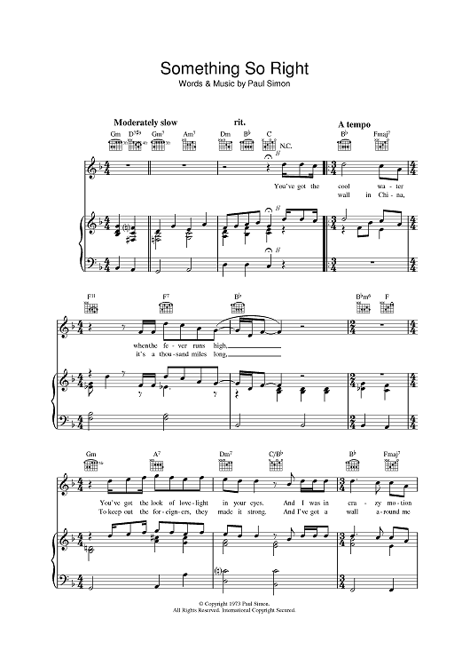 Digital Sheet Music for Something So Right by Paul Simon scored for Piano/Vocal/Chords; id:391039