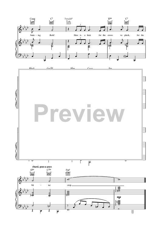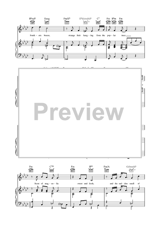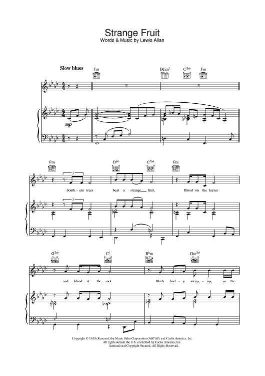 Digital Sheet Music for Strange Fruit by Billie Holiday, Lewis Allen scored for Piano/Vocal/Chords; id:377110