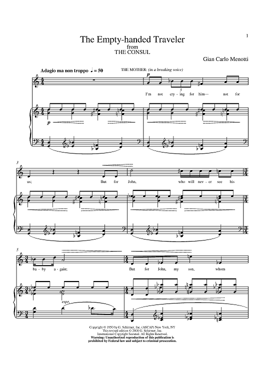"The Empty-handed Traveler" Sheet Music by Gian Carlo Menotti