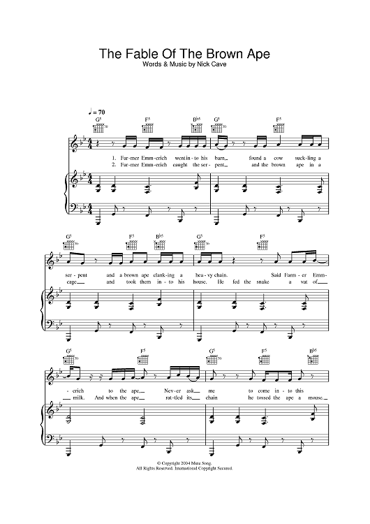 Digital Sheet Music for The Fable Of The Brown Ape by Nick Cave scored for Piano/Vocal/Chords; id:380218