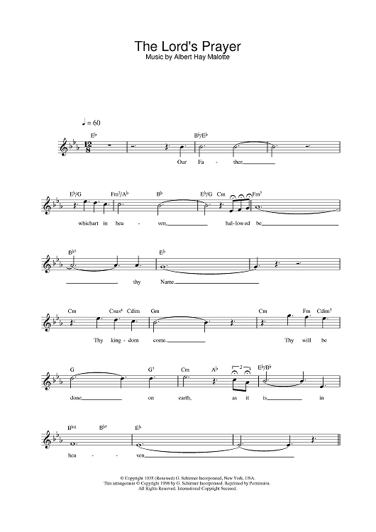 Digital Sheet Music for The Lord's Prayer by Charlotte Church scored for Lead Sheet; id:376774