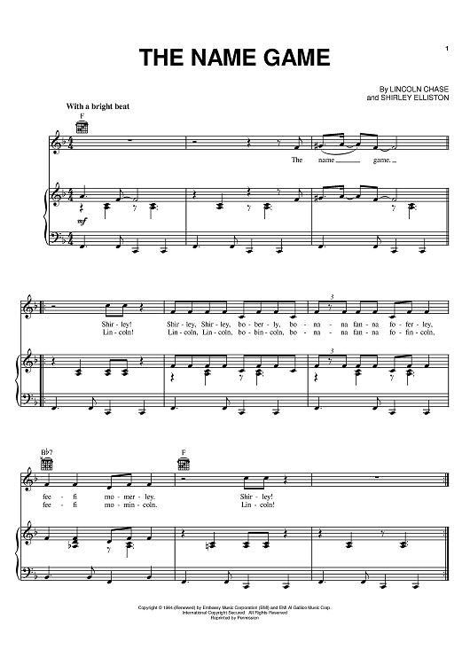 Digital Sheet Music for The Name Game by Shirley Elliston, Lincoln Chase scored for Piano/Vocal/Chords; id:391694