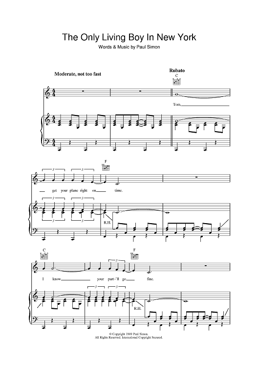 Digital Sheet Music for The Only Living Boy In New York by Paul Simon, Simon & Garfunkel scored for Piano/Vocal/Chords; id:390829