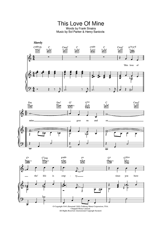 Digital Sheet Music for This Love Of Mine by Frank Sinatra, Henry Sanicola, Sol Parker scored for Piano/Vocal/Chords; id:394967