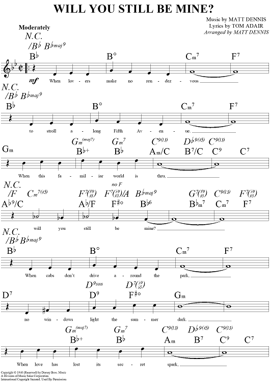 Digital Sheet Music for Will You Still Be Mine by Matt Dennis, Tom Adair, Connie Haines scored for Lead Sheet; id:271232