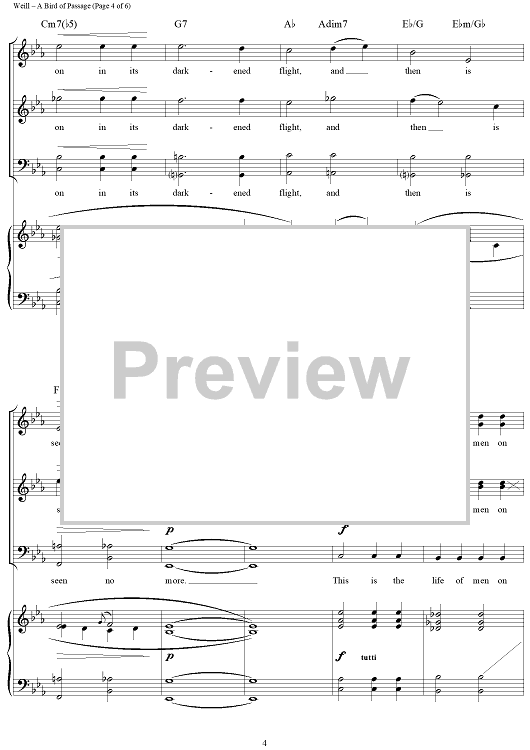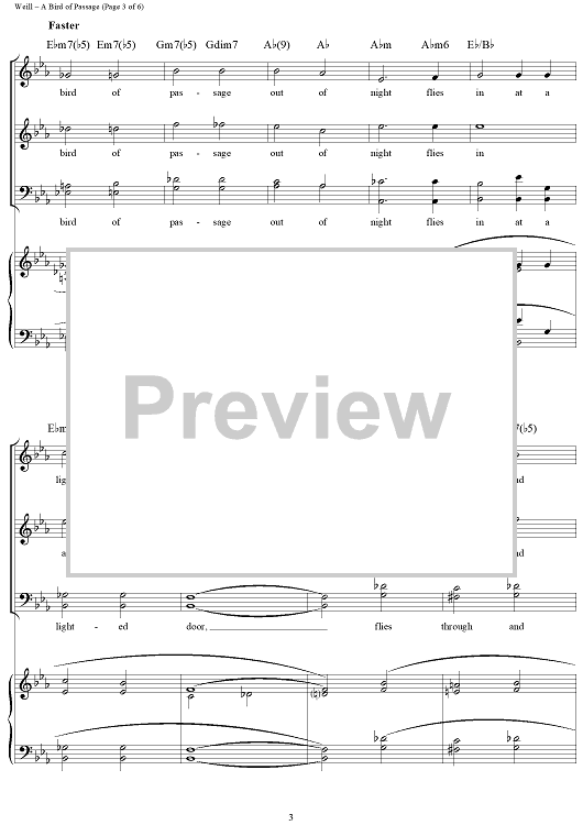 "A Bird of Passage" Sheet Music by Kurt Weill