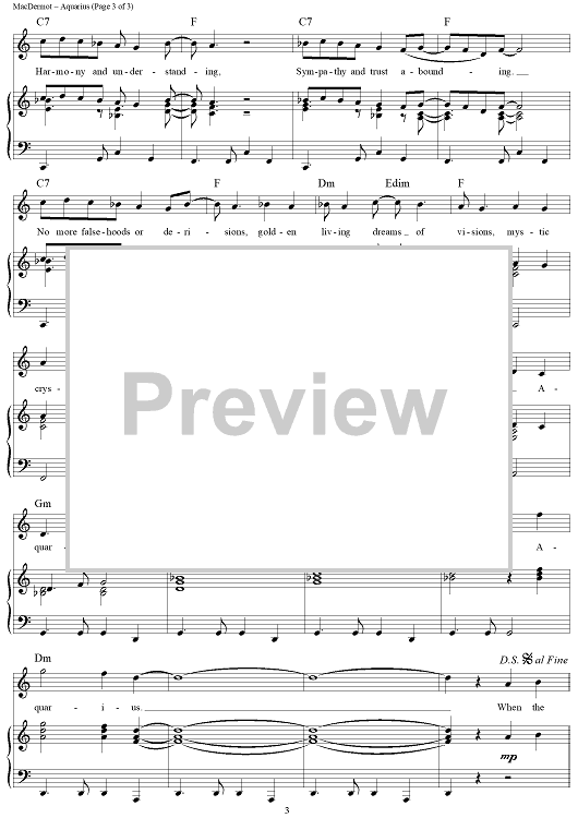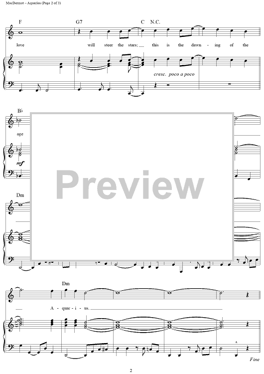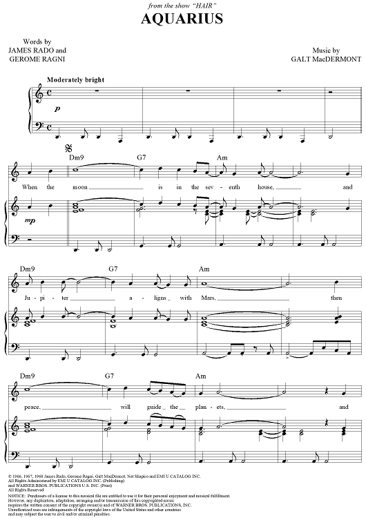 Digital Sheet Music for Aquarius by Galt MacDermot, James Rado, Gerome Ragni, The 5th Dimension scored for Piano/Vocal/Chords; id:112032