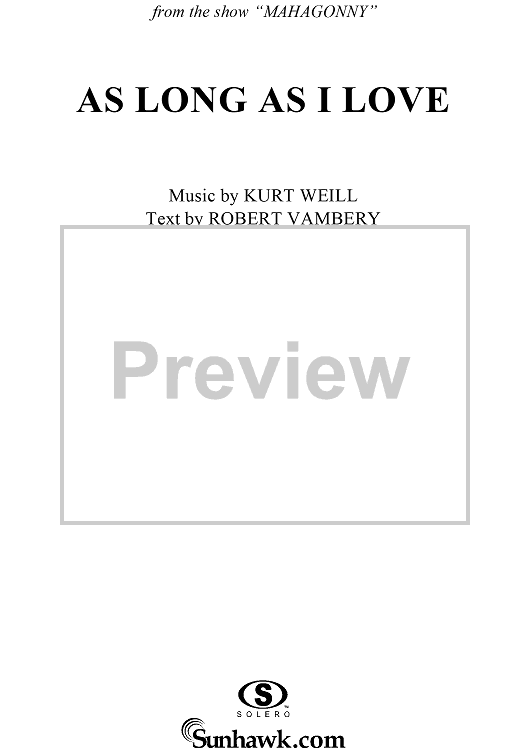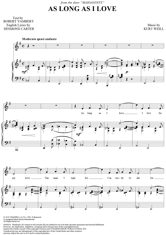 Digital Sheet Music for As Long As I Love by Desmond Carter, Robert Vambery, Kurt Weill scored for Piano/Vocal; id:263693