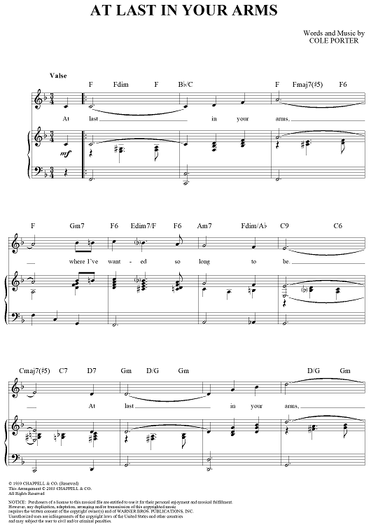 Digital Sheet Music for At Last in Your Arms by Cole Porter scored for Piano/Vocal/Chords; id:303142