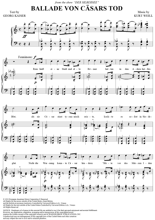 "Ballade von Casars Tod" Sheet Music by Kurt Weill