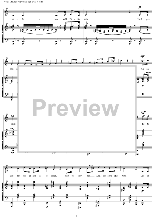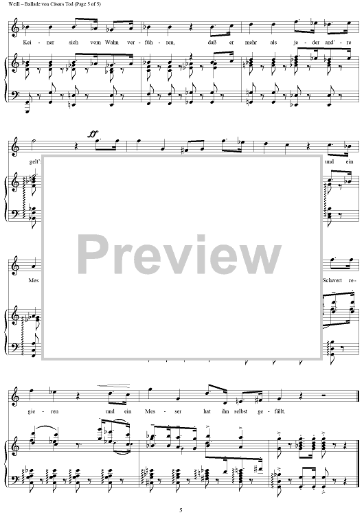 Digital Sheet Music for Ballade von Casars Tod by Georg Kaiser, Kurt Weill scored for Piano/Vocal; id:263707