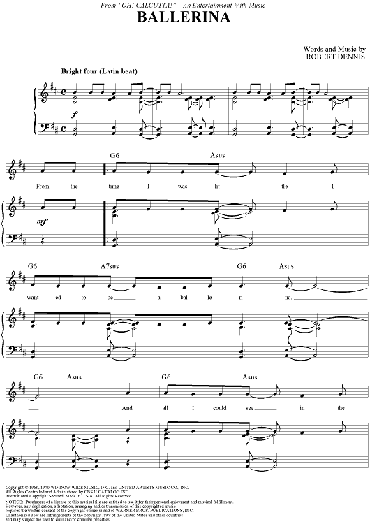 Digital Sheet Music for Ballerina by Robert Dennis scored for Piano/Vocal/Chords; id:240511