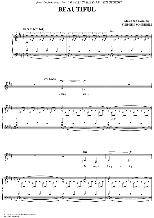 Digital Sheet Music for Beautiful by Stephen Sondheim scored for Piano/Vocal; id:120355