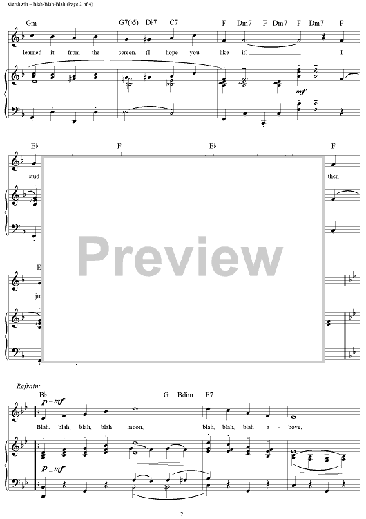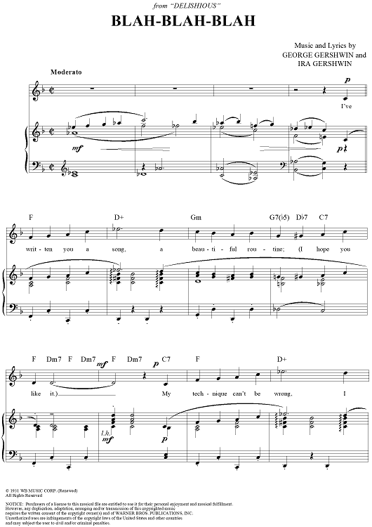 Digital Sheet Music for Blah, Blah, Blah by George Gershwin, Ira Gershwin scored for Piano/Vocal/Chords; id:120543