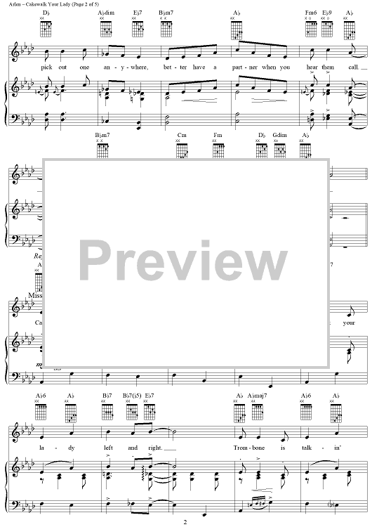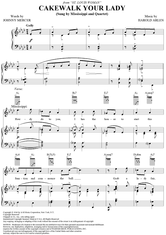 Digital Sheet Music for Cakewalk Your Lady by Harold Arlen, Johnny Mercer scored for Piano/Vocal/Chords; id:355984