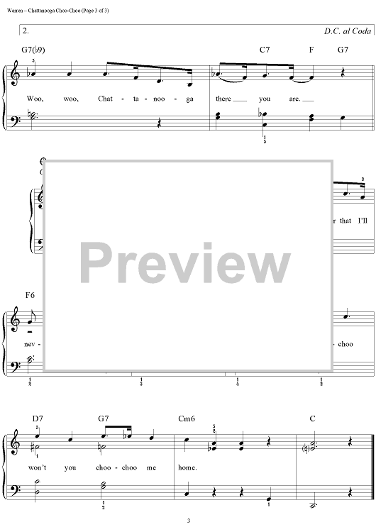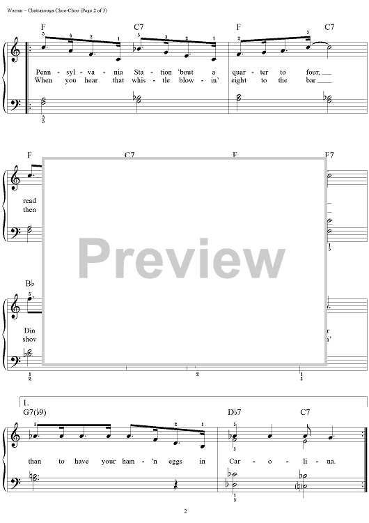 Digital Sheet Music for Chattanooga Choo-Choo by Harry Warren, Mack Gordon, John Brimhall scored for Easy Piano/Vocal; id:264514