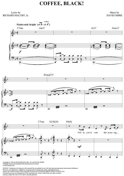 Digital Sheet Music for Coffee, Black! by David Shire, Richard Maltby Jr. scored for Piano/Vocal/Chords; id:313523