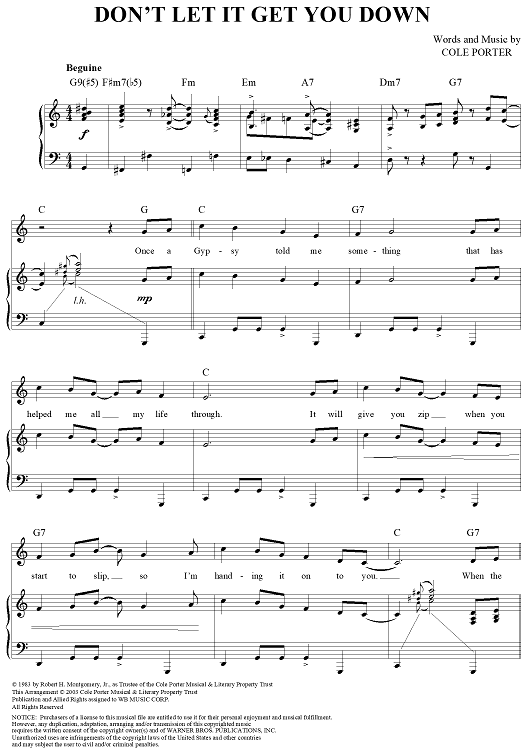 "Don't Let It Get You Down" Sheet Music by Cole Porter