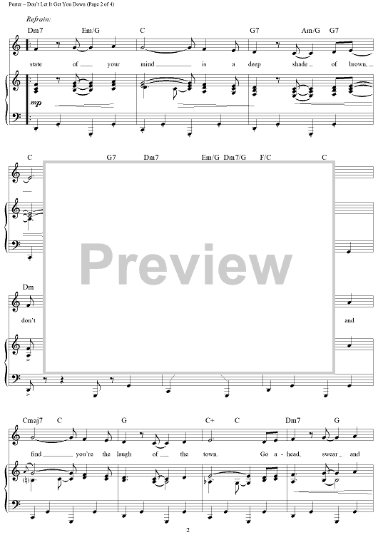 Digital Sheet Music for Don't Let It Get You Down by Cole Porter scored for Piano/Vocal/Chords; id:303151