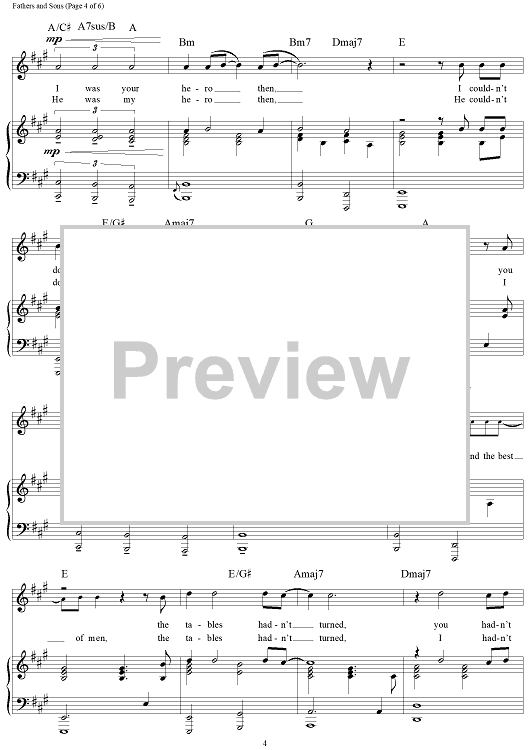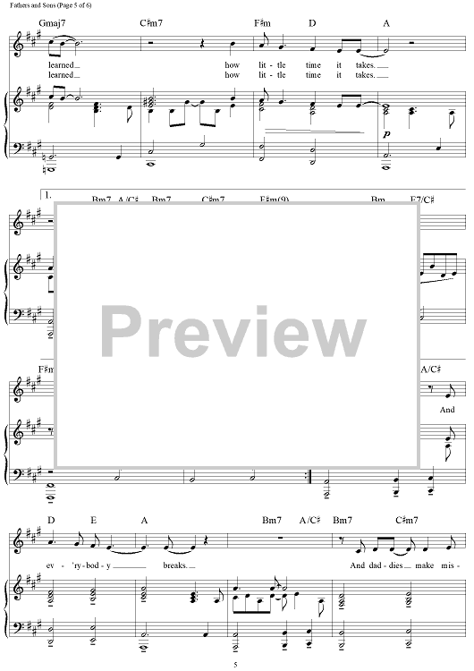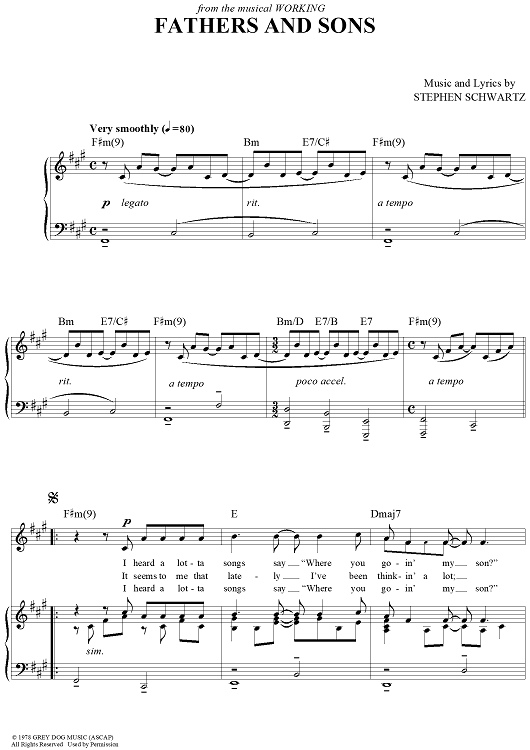 Digital Sheet Music for Fathers and Sons by Stephen Schwartz scored for Piano/Vocal/Chords; id:113080