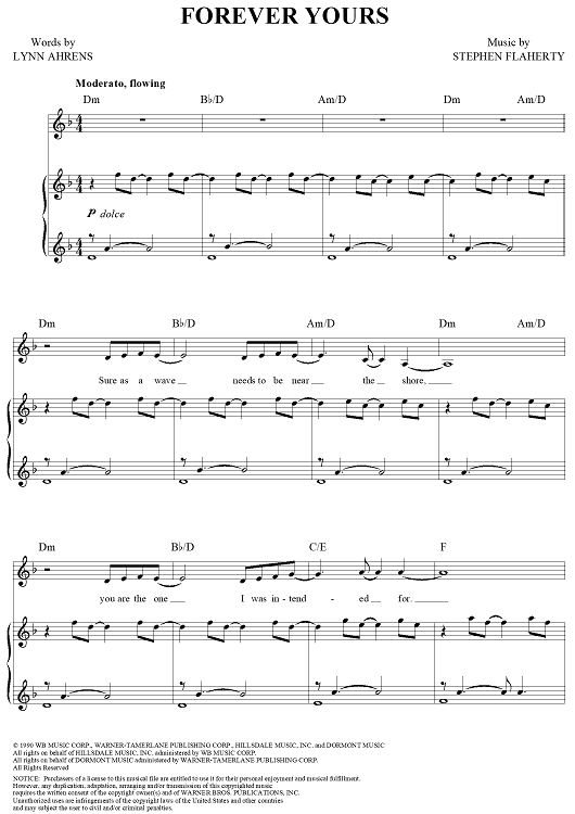 Digital Sheet Music for Forever Yours by Stephen Flaherty, Lynn Ahrens scored for Piano/Vocal/Chords; id:315070