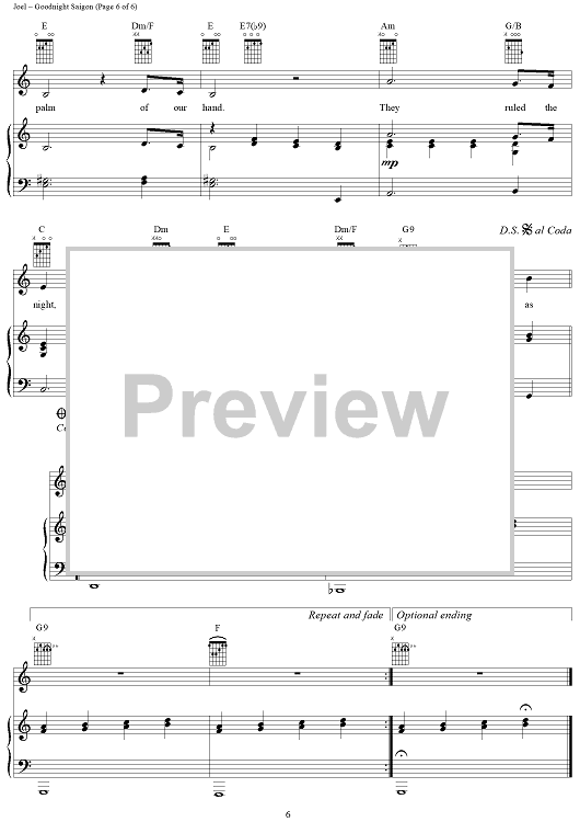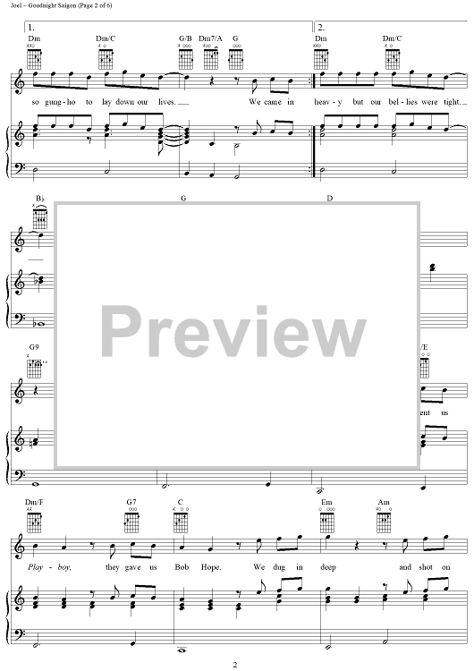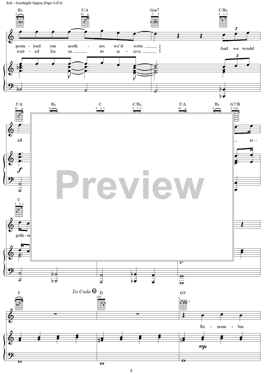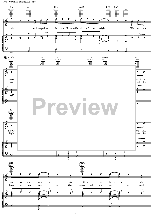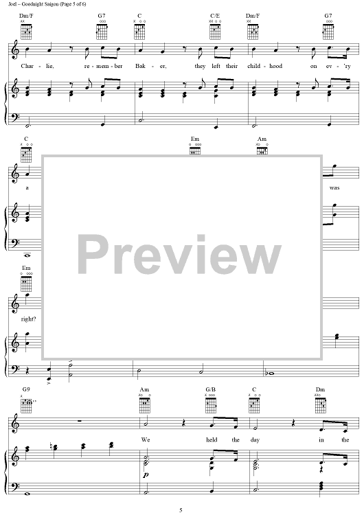 Digital Sheet Music for Goodnight Saigon by Billy Joel scored for Piano/Vocal/Chords; id:367157