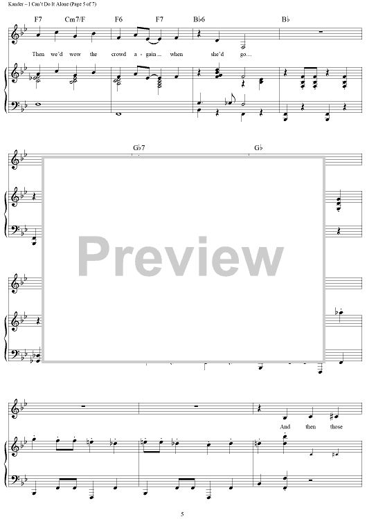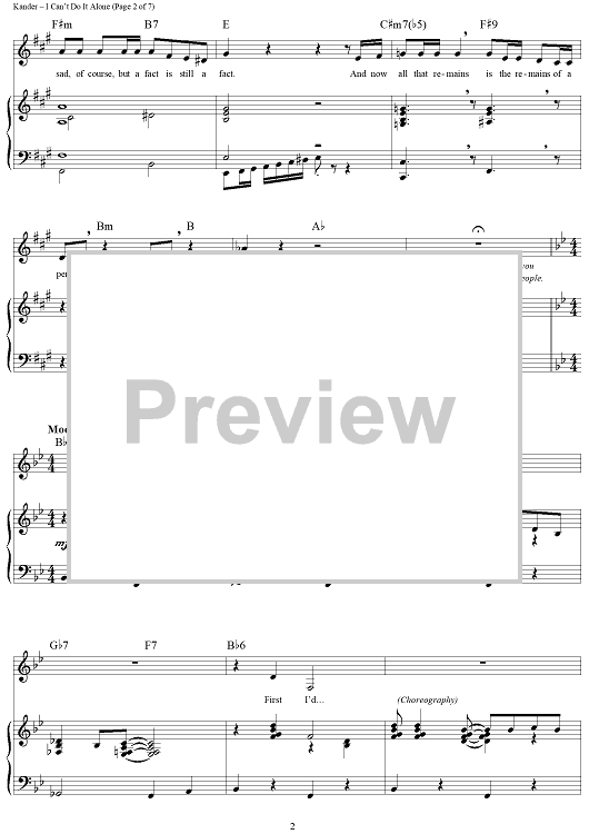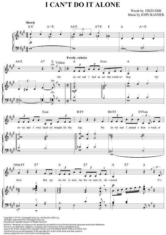 Digital Sheet Music for I Can't Do It Alone by John Kander, Fred Ebb scored for Piano/Vocal/Chords; id:295074