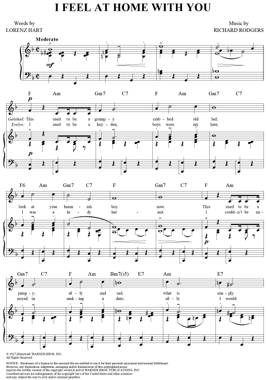 Digital Sheet Music for I Feel at Home With You by Richard Rodgers, Lorenz Hart scored for Piano/Vocal/Chords; id:313454