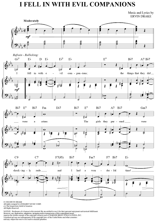 "I Fell In With Evil Companions" Sheet Music by Ervin Drake