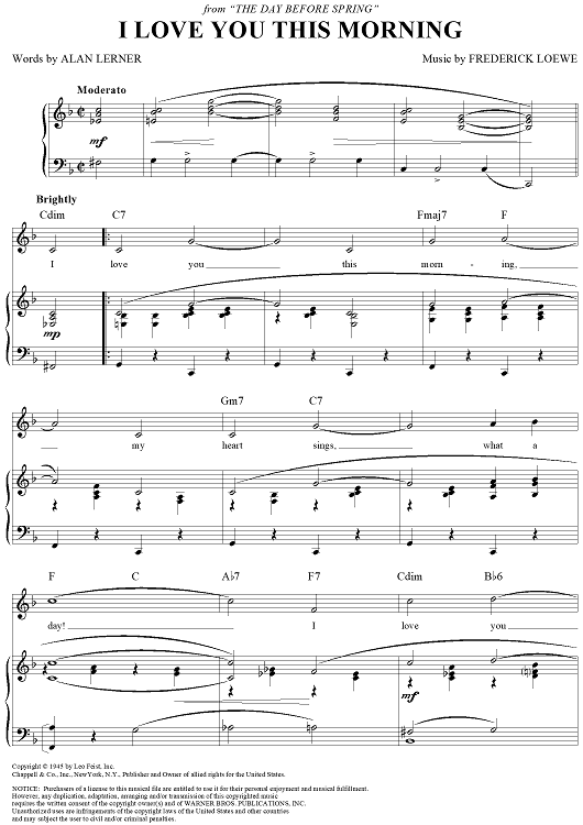 "I Love You This Morning" Sheet Music by Frederick Loewe