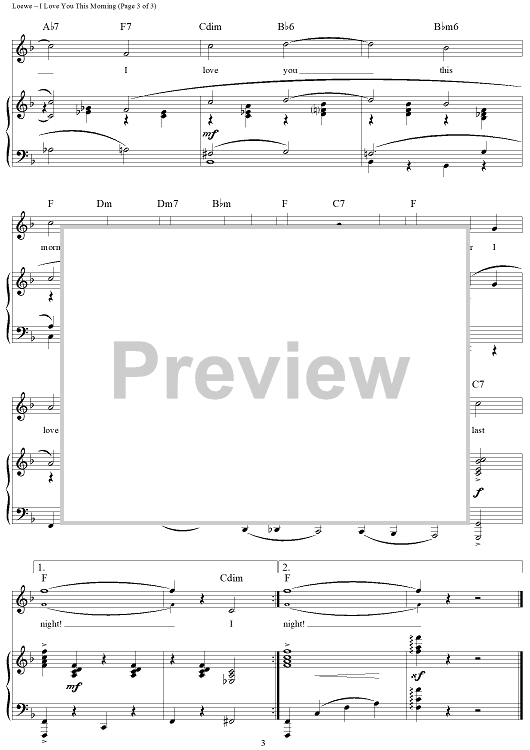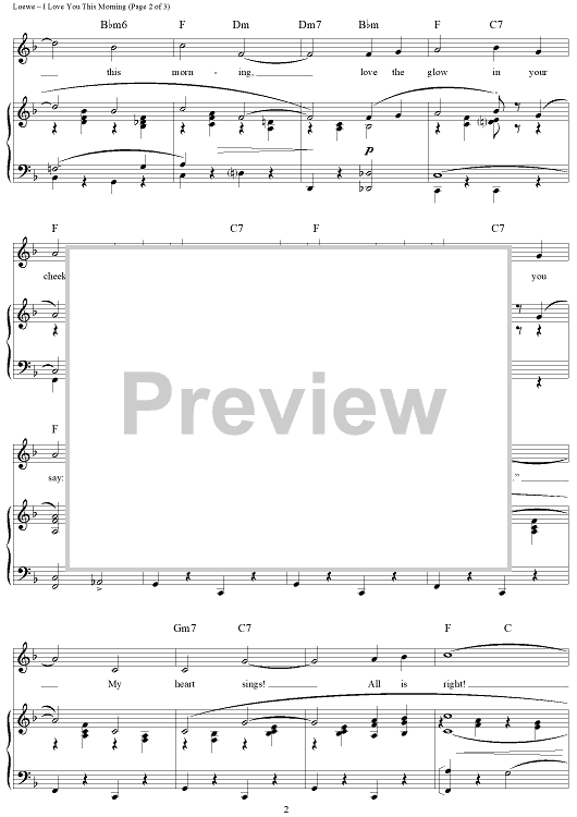 Digital Sheet Music for I Love You This Morning by Frederick Loewe, Alan Jay Lerner scored for Piano/Vocal/Chords; id:314336