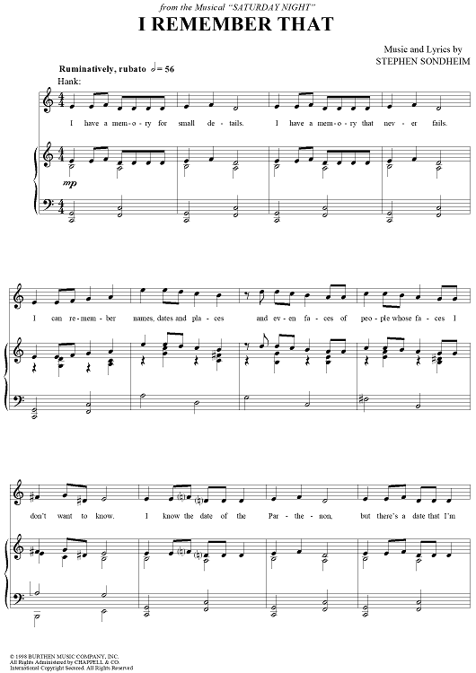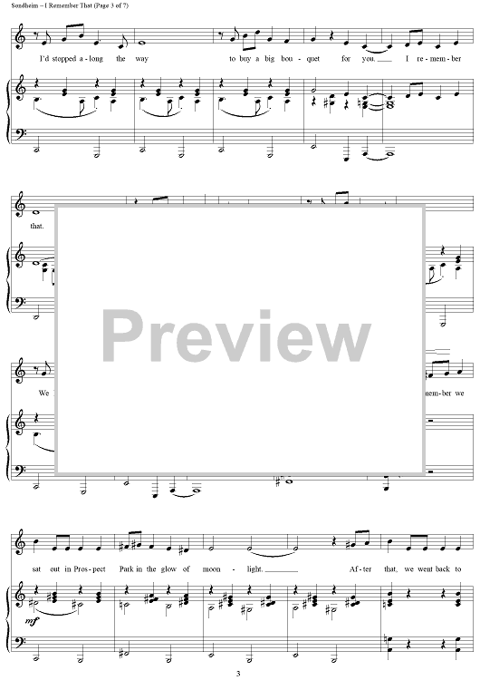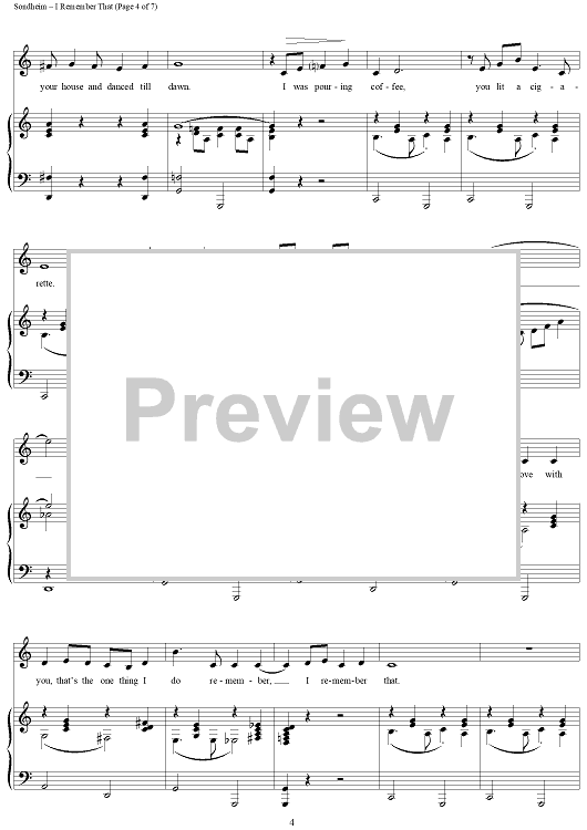 Digital Sheet Music for I Remember That by Stephen Sondheim scored for Piano/Vocal; id:220622