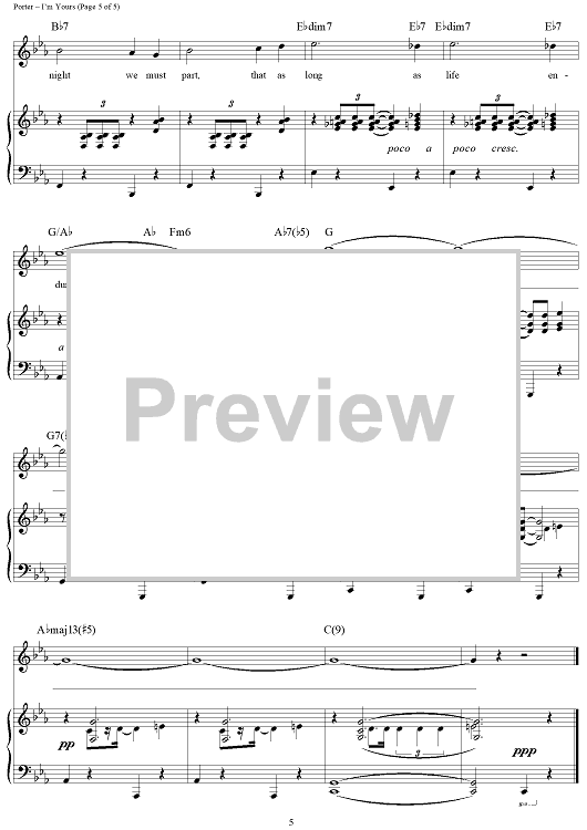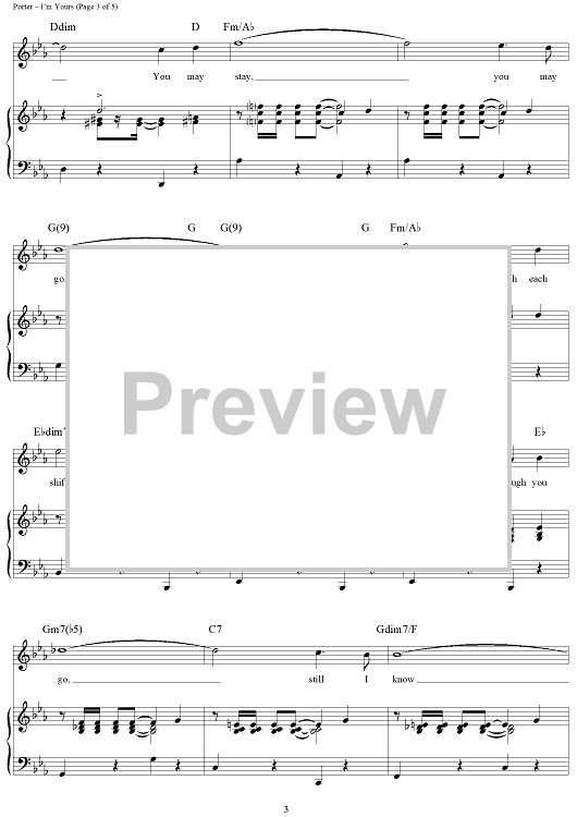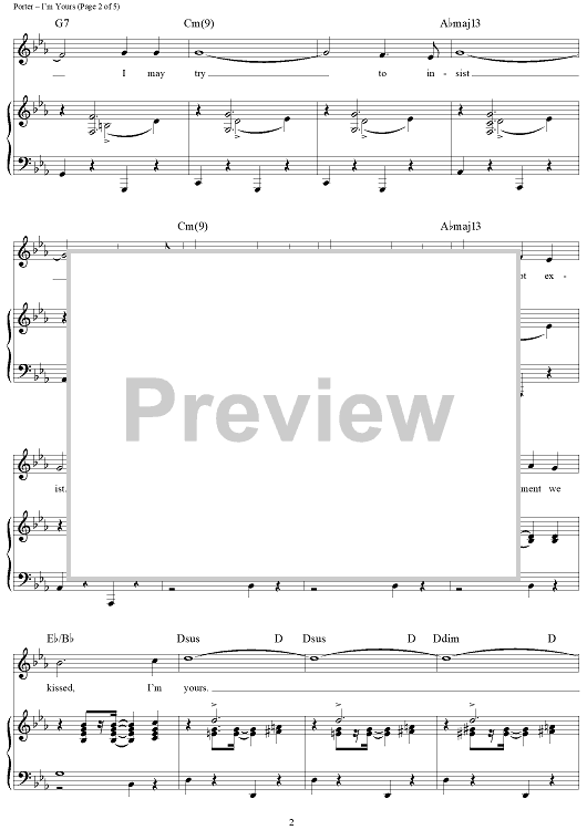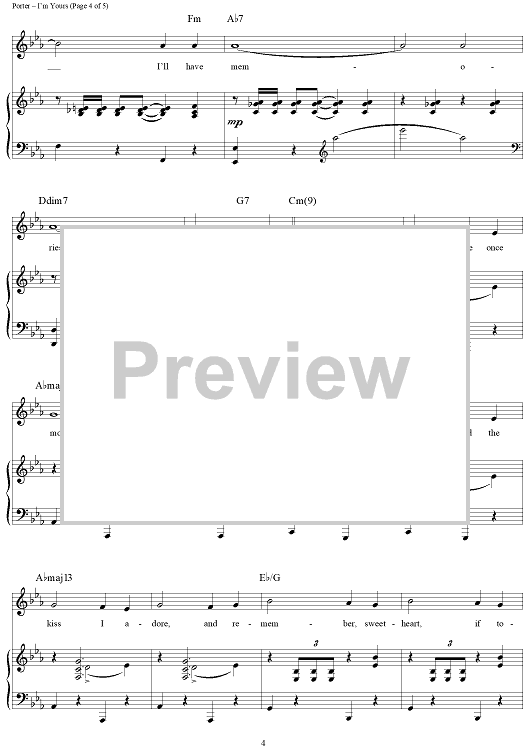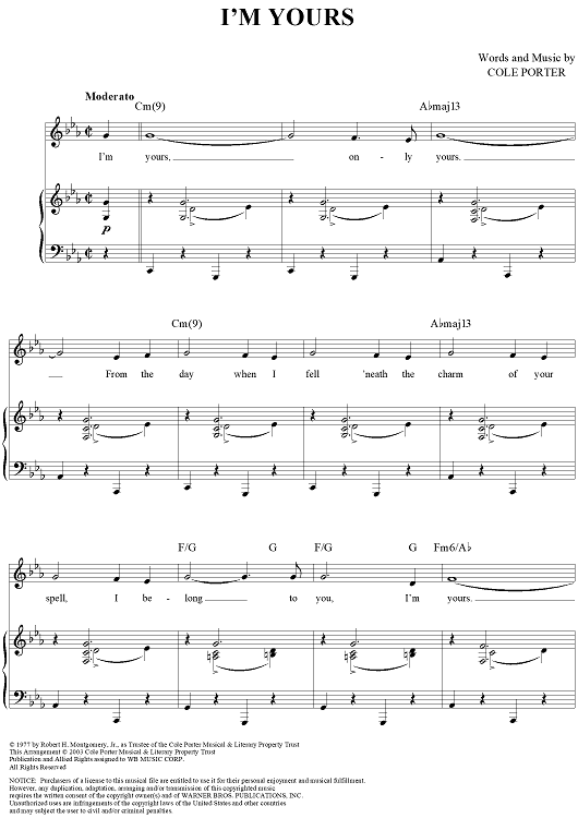 Digital Sheet Music for I'm Yours by Cole Porter scored for Piano/Vocal/Chords; id:303141