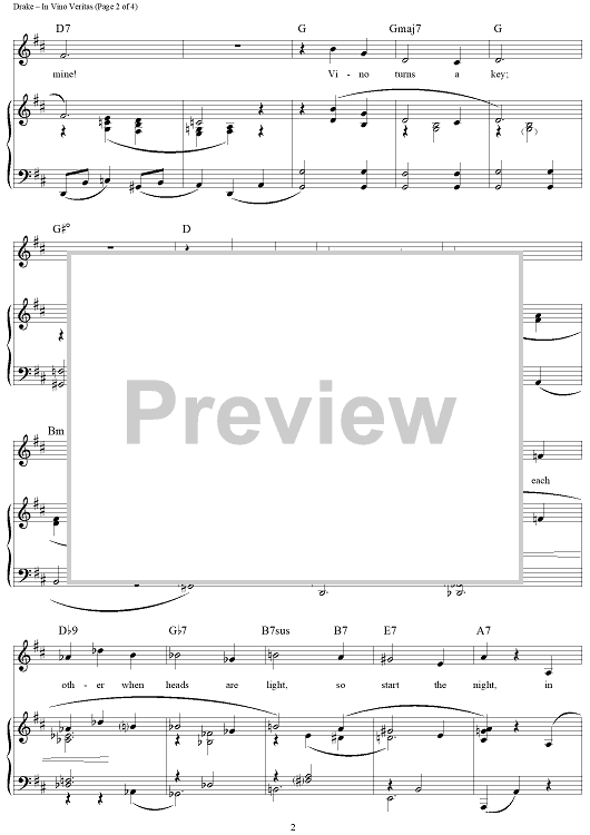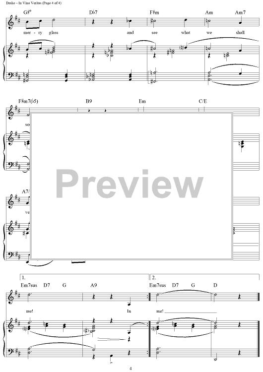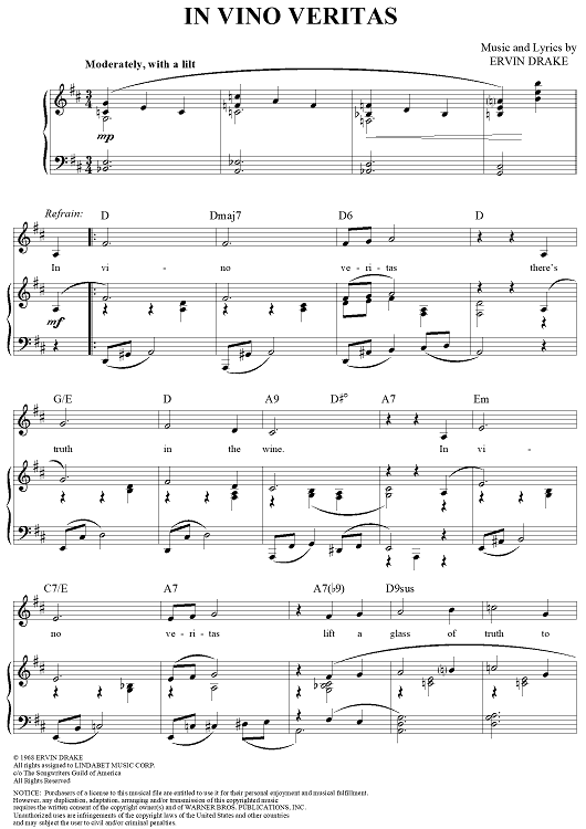 Digital Sheet Music for In Vino Veritas by Ervin Drake scored for Piano/Vocal/Chords; id:313561