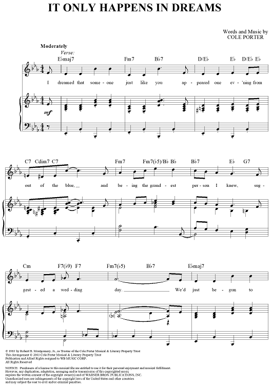 Digital Sheet Music for It Only Happens in Dreams by Cole Porter scored for Piano/Vocal/Chords; id:303190